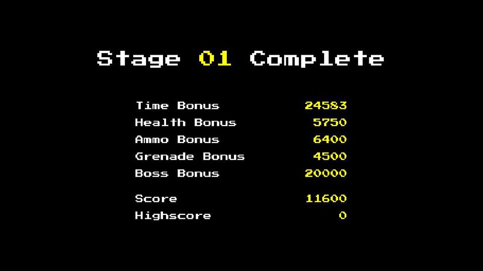 The graphics are great, gorgeous pixel art with blocky lines and bold colours. The odd explosion and special effect give a little wow factor and the animation is decent for a budget title. There is nothing groundbreaking here but you will appreciate the attention to detail. We were most impressed with level two that is a motorcycle chase with enemies from above and below.