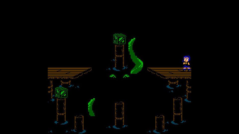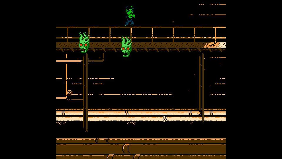The platforming action is challenging in Haunted: Halloween ’86. If you’re old enough to remember the rage inducing antics of the 8-bit era you will understand. But do not let that put you off, the platforming is fair, fast and rewarding. Extra lives and health entice you to reach for the harder areas. There are spikes and toxic hazards to avoid and lots of moving platforms, especially later on. You will also find that using the butt-slam move will help to keep you on target with your double jumps.