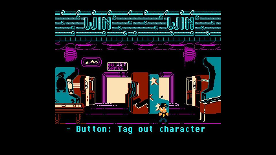 You can switch between the two characters, Donny and Tami, at will and they each have their own life gauge. As you take damage from the undead you slowly start to become infected and the sprite changes colour. This is a nice touch and you will need to switch regularly as the damage increases. Candy found within the stages and boxes heals you and extra lives are gained from soda cans. You have no continues but you are granted a level code after each boss fight to make up for this.
