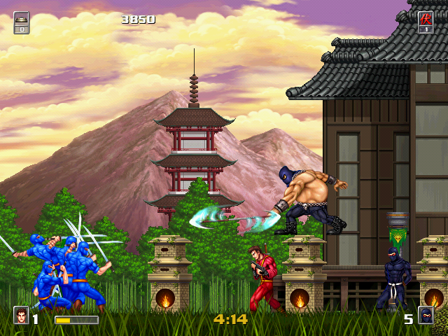 A YouTube video showing an early build of the game has been released and Shadow Gangs is shaping up nicely. Set across ten levels with six bosses you play as Dan who is a Ninja Order Master. The game plays very similar to Rolling Thunder with respawning enemies and platforms to switch between as you progress. Shinobi style melee attacks are also used to defeat enemies who get close. There are devilish jumps to overcome and ninja friends to rescue in order to progress through the levels.