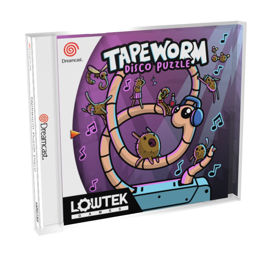Tapeworm Disco Puzzle is the second Dreamcast title from Lowtek Games. Their first, Flea!, was a homage to the excellent Super Meat Boy. This time around they tackle the puzzle genre. It is available now on Lowtek’s Etsy site and includes the CD soundtrack. Tapeworm started out life as a NES game and has since been ported to PC before landing on the Dreamcast. I was impressed with Flea! so had high hopes going into this one. It is fantastic to see a new puzzle game make its way to the Dreamcast and I hope this is not the last we see of Lowtek Games on the system.