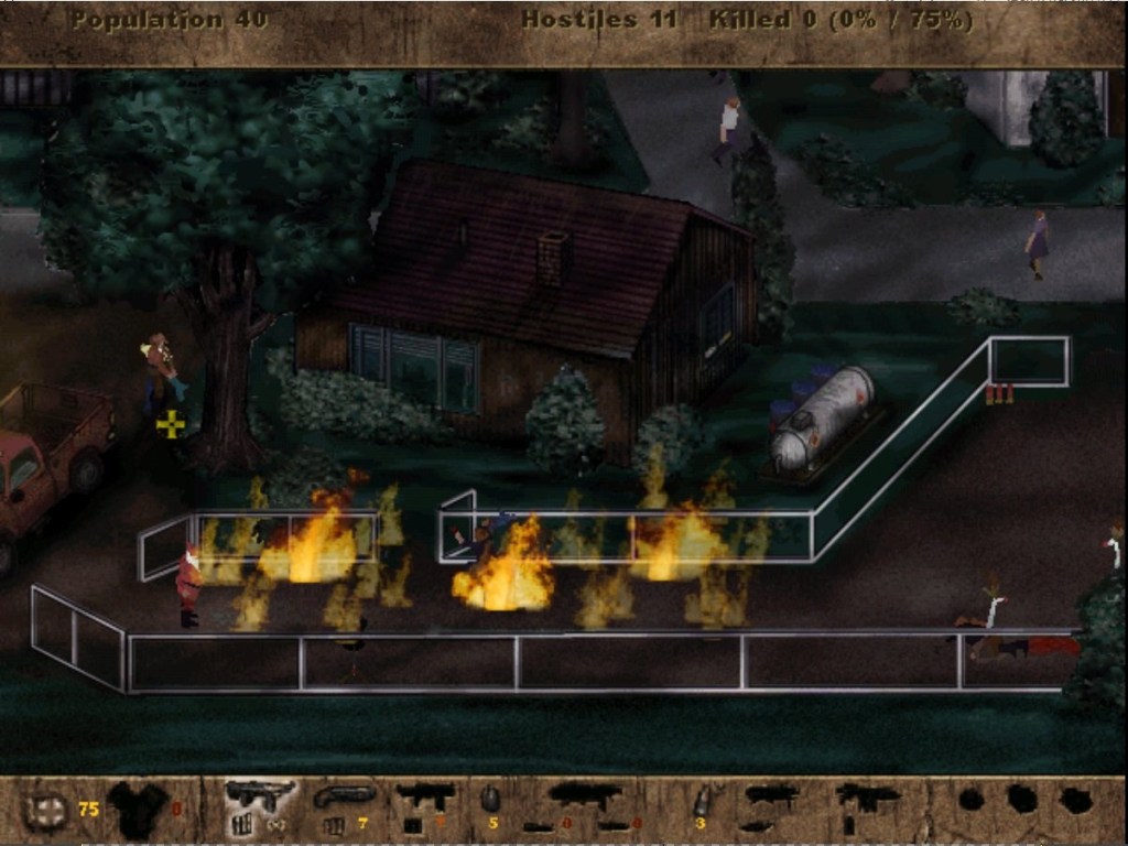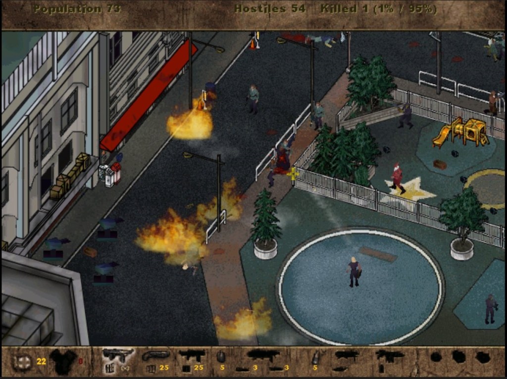 For anyone who did not play the original game, it’s an isometric shooter where you play as a guy who has gone postal. During the game, you go on a rampage of mass murder killing anybody in your way from innocent bystanders to zoo animals. It was released in 1997, not long after the controversy of video game violence in the 90s. The ultra-violence garnered criticism and it’s still banned in Germany and New Zealand to this day. On release, the game’s developers found themselves in a legal battle with the US Postal Service but it was eventually dropped. Looking back at the game now it was clearly a comical title, even if some thought it was in bad taste.