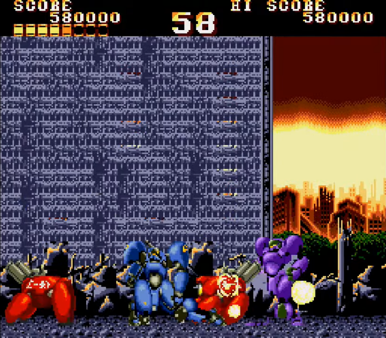 Mad Stalker, also contains a multipalyer mode where you and a second palyer can duke it out, but also you notice that the game’s combat system and the sprite work make it feel like its supposed to be a fighting game. The game also allows you to choose any of the characters from the player characters to enemies and boss robots.