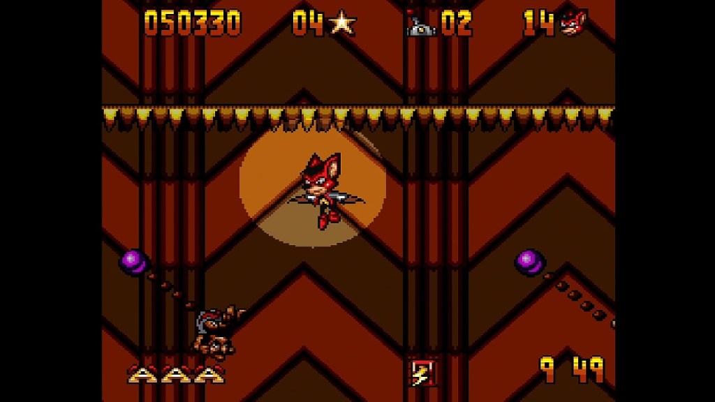 The music is exactly what you want from this type of game and is one of the better aspects of the overall presentation. It bumps along at a great pace so you can get into a rhythm as you improve controlling Aero. It’s a tough genre to stand out from in the presentation stakes when you think about Sonic, Mario and Donkey Kong Country all released around this time, but Aero holds his own and is a memorable character.