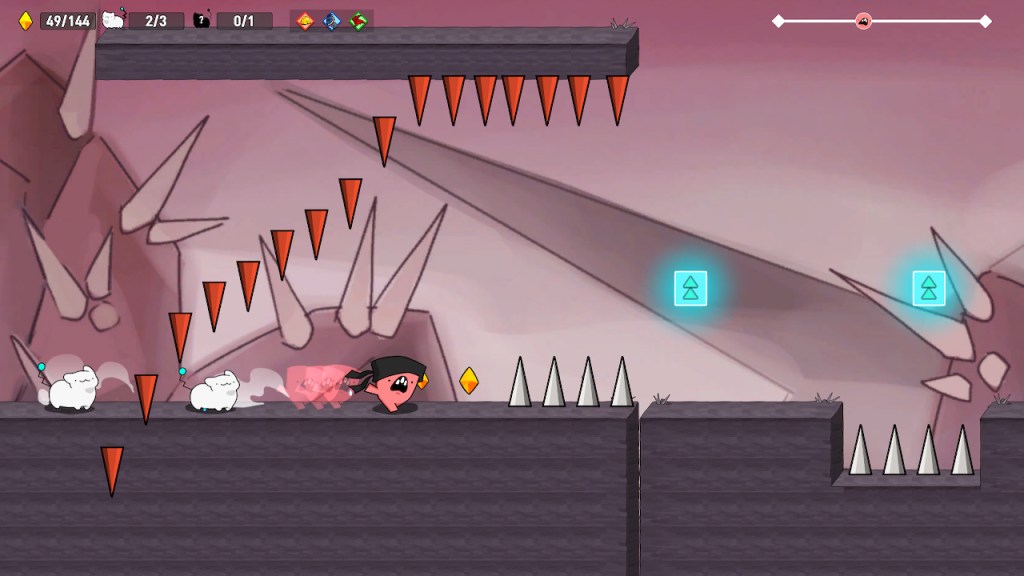 However, don’t be thinking that Demon Go!’s simplicity means that it’s no fun! The game successfully distils the 2D platformer into pure, concentrated gameplay goodness. And just because it’s a simple game, that doesn’t mean there aren’t challenges to be had. You’ll encounter boss fights, have collectibles to amass and achievements to, er, achieve, all of which add to the game’s longevity.