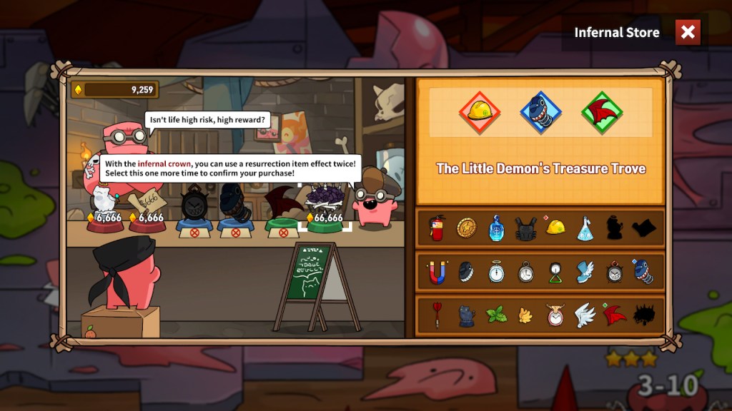 Demon Go!’s soundtrack is effective, if unremarkable, with the fast tempo of the music adding to the urgency of escaping Hell. Another nice touch is that Demon Go! tells you how many attempts you take to clear each level. While this acts as motivation to keep going, it can also be a little dispiriting!