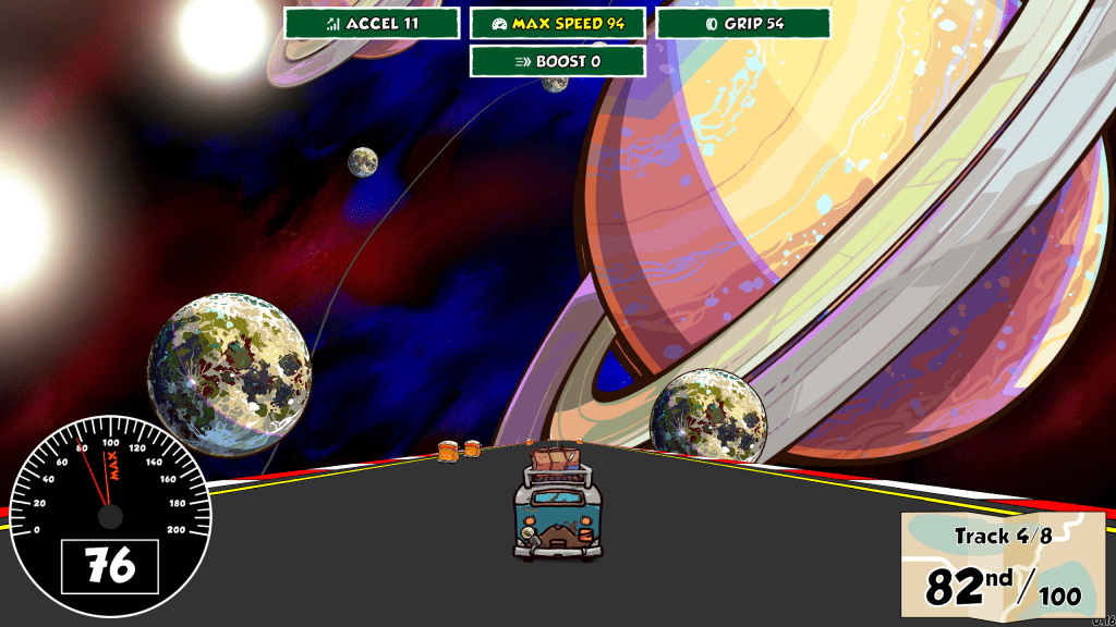 It’s fair to say right from the off, that Reality Drift probably will not appeal to the racing fans who enjoy high octane excitement and realsitic handling. However, those who enjoy levelling up characters, procedurally generated stages and random presentations, will find a a lot of joy here. Controlling your campervan couldn’t be easier with most of the focus being on the sceneray rather than difficult driving.
